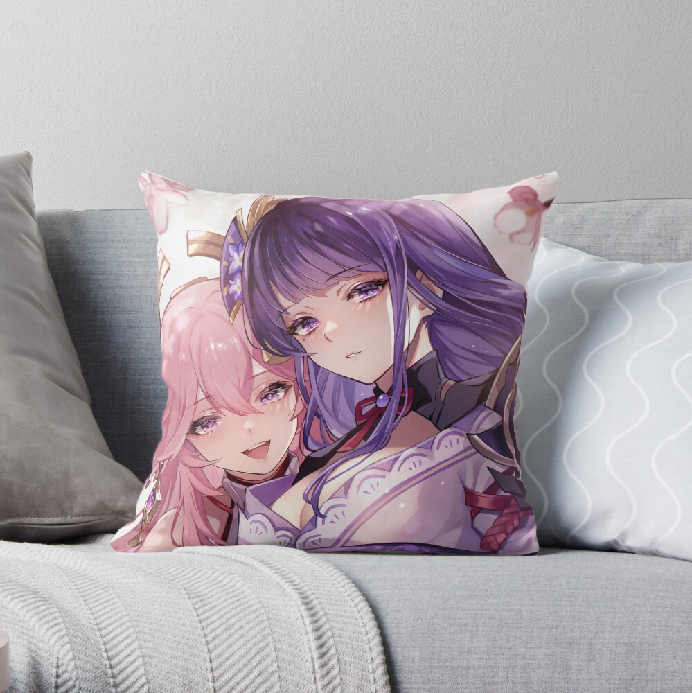Genshin Impact 105 Yae Miko And Baal Raiden Shogun Throw Pillow